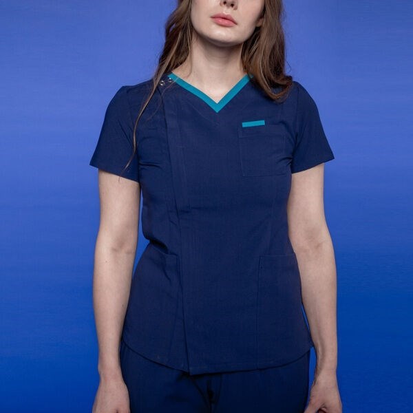 Женская медицинская туника серии 268 California от бренда PULSE имеет прямой крой, короткий рукав, разрезы по бокам и V-образный вырез. Главной "изюминкой" модели является застежка — скрытая косая молния. Туника дополнена тремя карманами: два накладных и один нагрудный, а также яркой контрастной окантовкой на горловине. Данное изделие доступно в разных цветовых вариантах.