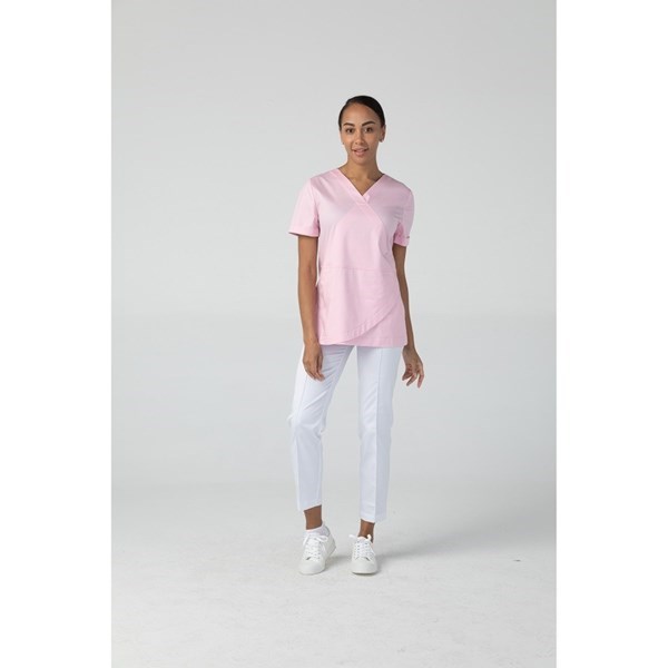 Женская медицинская туника с V-образным вырезом от бренда Dr.Nice выполнена в современном стиле с оригинальной дизайнерской отделкой с имитацией запаха по передней части изделия. Модель прямого кроя с коротким рукавом.