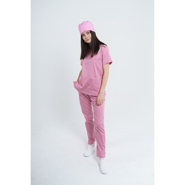 Женская медицинская туника TZ200 имеет прямой крой, короткий рукав, разрезы по бокам и V-образный вырез. Модель дополнена тремя прорезными карманами с цветной вставкой: два спереди и один на груди. Для удобства на левом плече имеется застежка на металлических кнопках.