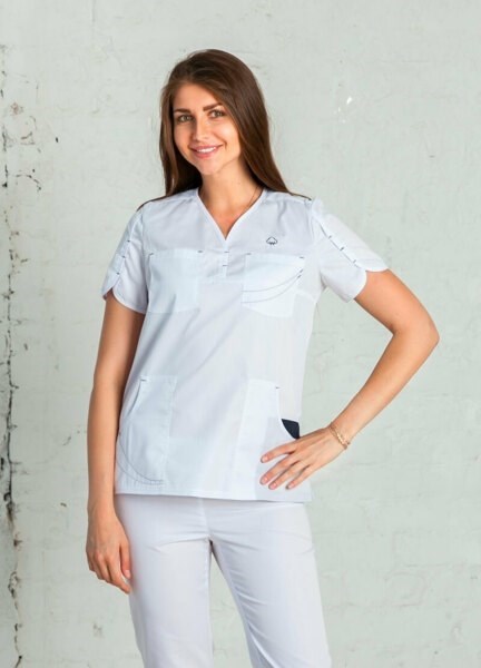 Блузон "Амалия" прямого кроя с V-образным вырезом выполнен в лаконичном и стильном дизайне из маломнущегося материала - сатори. Спереди блузона два нагрудных кармана и два накладных, которые дополнены отстрочкой из яркой нити, бокам небольшие разрезы. Над верхним левым нагрудным карманом вышивка логотипа торговой марки WW. За счет своего кроя данная модель отлично сочетается с различными брюками и юбками, тем самым можно менять постоянно свой образ.