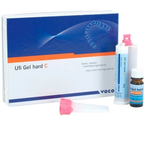 Описание: Ufi Gel hard C набор Voco 2215 комплект: картридж 80 г, адгезив во флаконе 10 мл, принадлежностиУфи Гель Хард С – это материал, подобный протезной пластмассе на основе полиметакрилата, для проведения постоянных жестких перебазировок во время одного приёма.