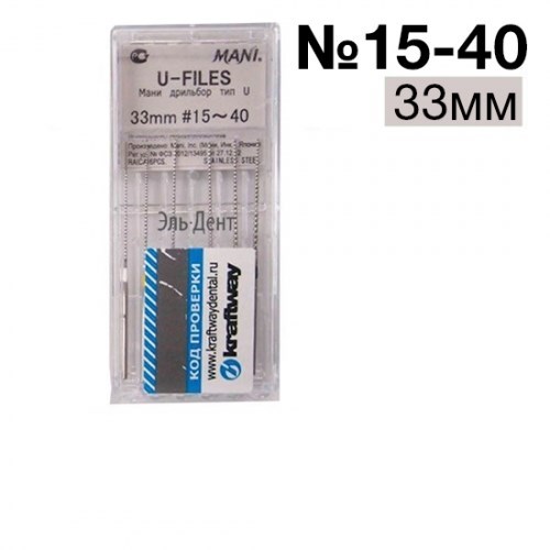 Упаковка: Ultrasonic Files (U-Files) №15-40 (33мм) диам. 0,8 - 6 шт.