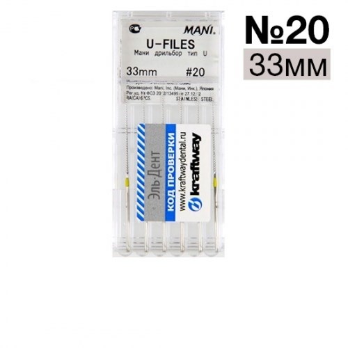 Упаковка: Ultrasonic Files (U-Files) №20 (33мм) диам. 0,8 - 6 шт.