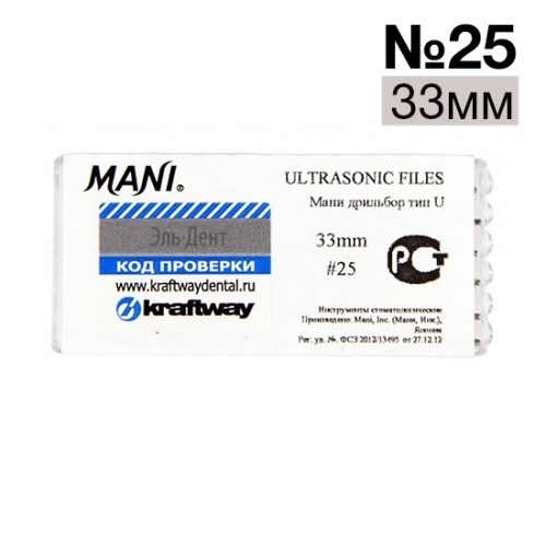 Упаковка: Ultrasonic Files (U-Files) №25 (33мм) диам. 0,8 - 6 шт.