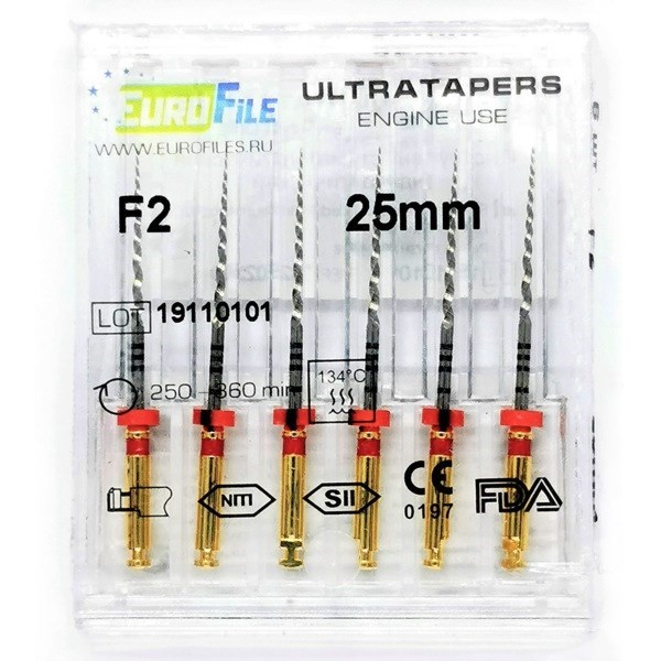 Ultratapers Engine - машинные файлы, 25 мм, размер F2, никель-титан, 6 шт