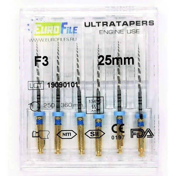 Ultratapers Engine - машинные файлы, 25 мм, размер F3, никель-титан, 6 шт