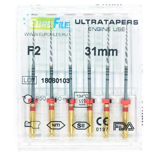 Ultratapers Engine - машинные файлы, 31 мм, размер F2, никель-титан, 6 шт
