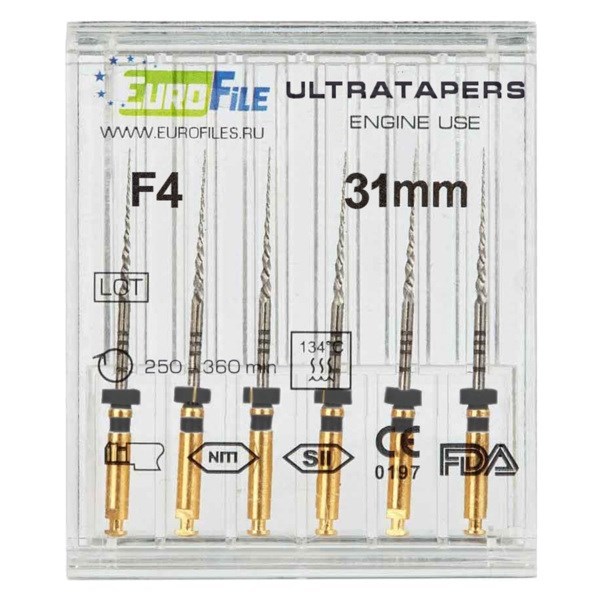 Ultratapers Engine - машинные файлы, 31 мм, размер F4, никель-титан, 6 шт