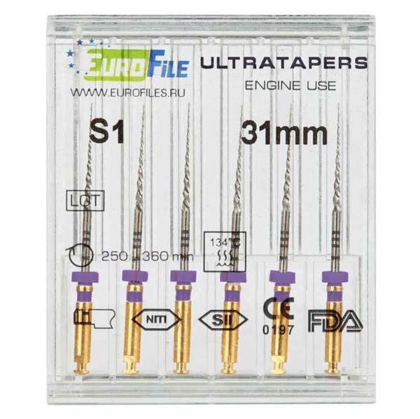 Ultratapers Engine - машинные файлы, 31 мм, размер S1, никель-титан, 6 шт