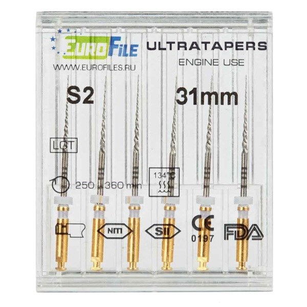 Ultratapers Engine - машинные файлы, 31 мм, размер S2, никель-титан, 6 шт