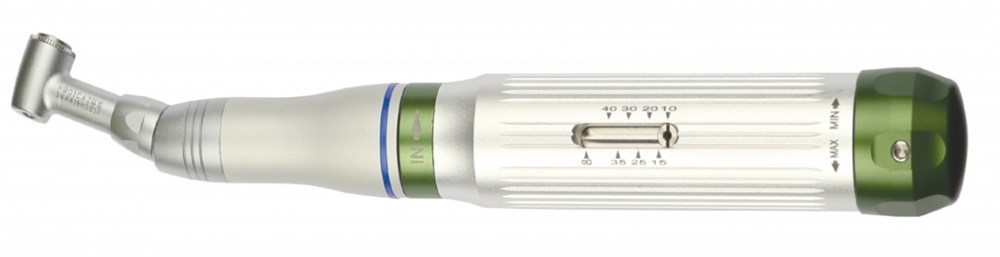Назначение: Угловой наконечник, входящий в комплект, можно заменить на прямой наконечник, что позволяет расширить перечень выполняемых задач: - установка супраструктуры любых имплантационных систем; - установка микроимплантатов любых систем; - установка самонарезающих винтов любых систем. Высокая точность регулировки крутящего момента снижает риск поломки фиксирующих винтов супраструктур.