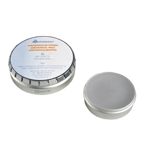 Универсальный воск - высококачественный воск, изготовленный из микровосков и растительных восков, серого цвета. Применяется в технике моделирования; благодаря густой консистенции возможно нанесение шпателем, а в технике скобления поверхность становится блестящей и гладкой. Подходит для фрезерования, т.к. не прилипает к фрезе, а выполненный уступ полностью гладкий. Воск твердый и пластичный, благодаря чему обеспечивается высококачественная точная работа.