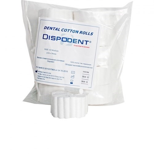 Описание: Валики ватные хлопковые Dispodent, 500 шт. Валики стоматологические хлопковые Dispodent применяются для обеспечения сухости операционного поля вокруг зуба. Этому способствует отличное влагопоглощение валиков.