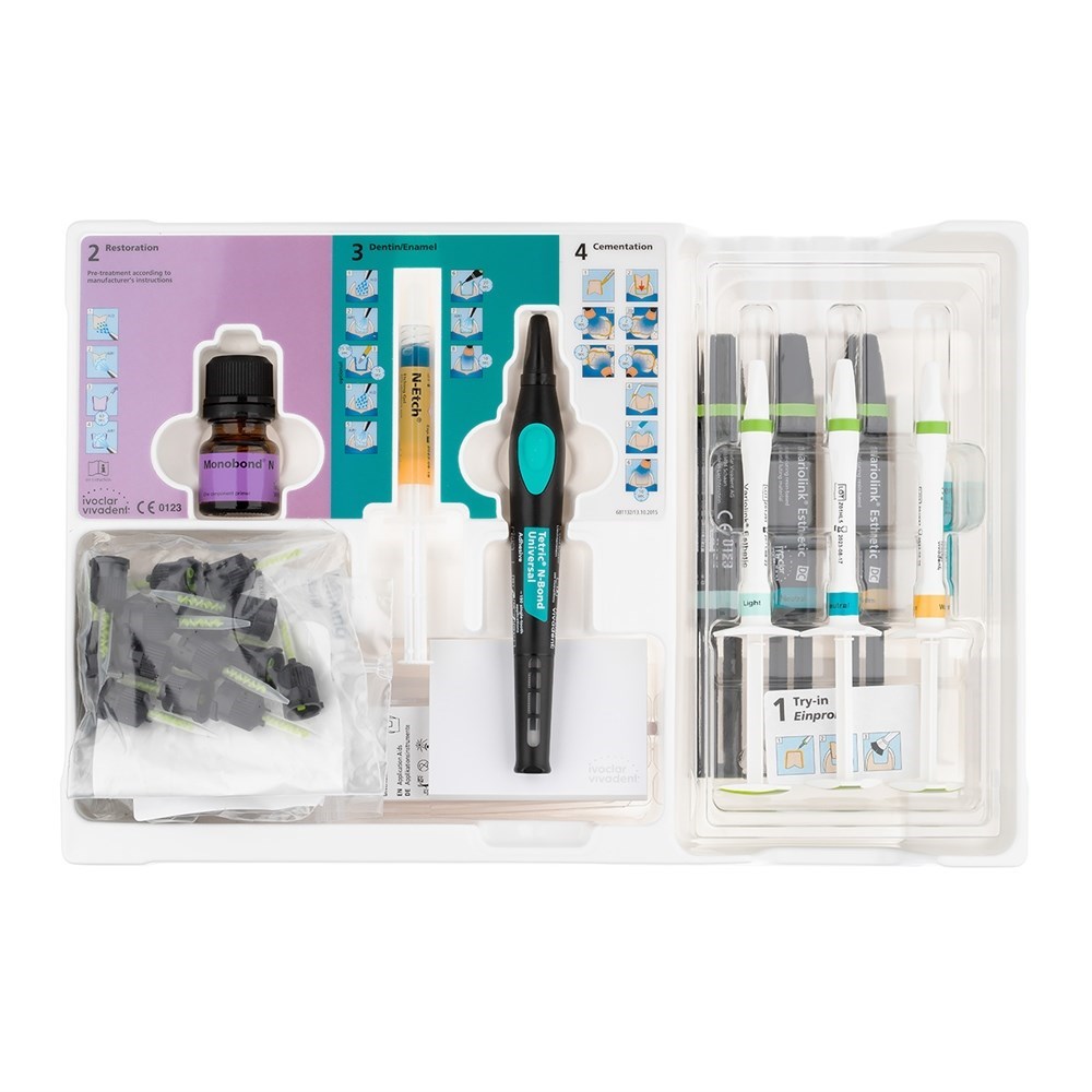 Variolink Esthetic DC System Kit/Tetric N-Bond Universal набор фиксирующего композита двойного отверждения, со стабильным цветом для постоянной фиксации керамических и композитных реставраций.