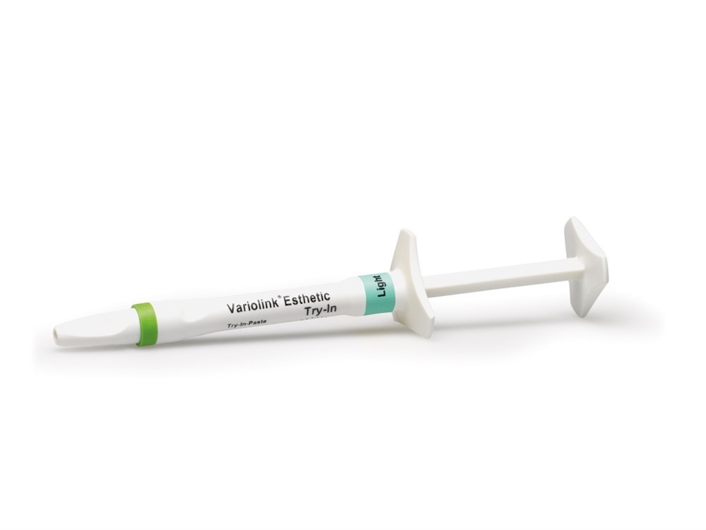 Примерочные пасты Variolink Esthetic — это водорастворимые глицериновые пасты, которые воспроизводят цвет цельнокерамических протезов (виниров, вкладок и накладок, коронок и мостовидных протезов) перед их постоянной фиксацией с помощью фиксирующего композита Variolink Esthetic.