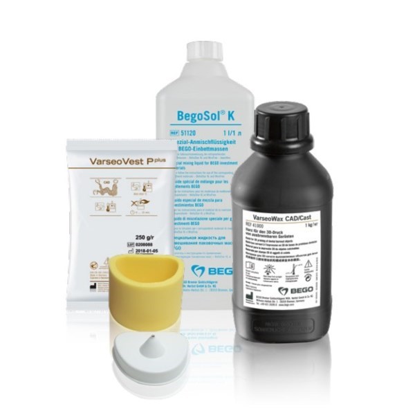 Стартовый набор для литья Varseo предназначен для 3D-печати. Материалы выгорают беззольно, что обеспечивает оптимальные условия для литья беспористых, гладких и точных конструкций.