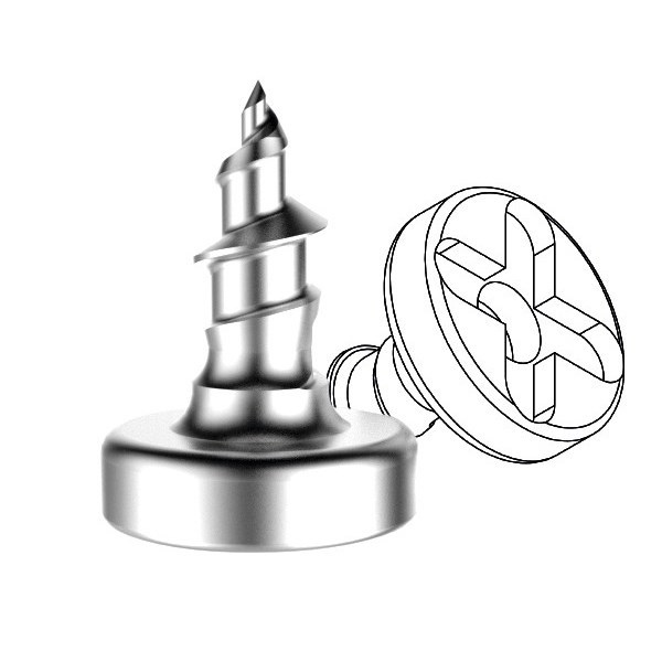 Винты предназначены для стабильной фиксации резорбируемых и нерезорбируемых мембран, а также титановых сеток. Головки винтов снабжены крестообразным шлицем, что обеспечивает наиболее жесткую фиксацию винта на лезвии отвертки. Дизайн винтов и отверток обеспечивает хорошую фрикционную посадку. Во время введения винта, лезвие отвертки прочно соединяется с головкой винта.