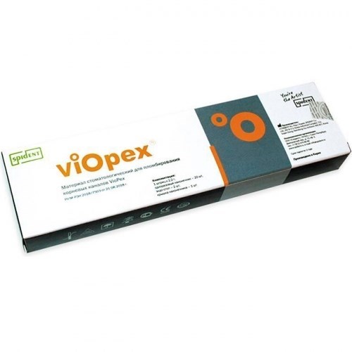 Описание: VioPex (1ш.х2,2 г,21 нас.)-паста для пломбирования каналов. Гидроксид кальция с Йодоформом, Spident VIOPEX - Пломбировочный материал для корневых каналов с великолепной рентгеноконтрастностью, мощным бактерицидным эффектом.