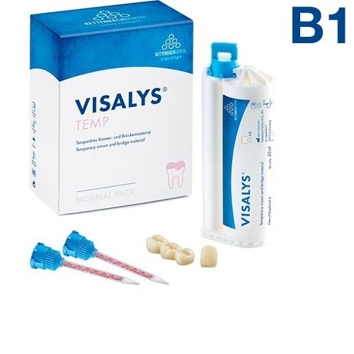 Visalys Temp (B1) - материал для временных коронок и мостов для чрезвычайно стабильных и прочных временных работ на короткий и длительный срок на основе многофункционального акрилового композита. Visalys Temp подходит для изготовления временных коронок, частичных коронок, мостов, вкладок, накладок и виниров.