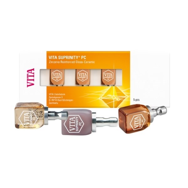 Армированная диоксидом циркония высокопрочная стеклокерамика VITA SUPRINITY PC доступна в виде монохроматических заготовок с двумя уровнями прозрачности уровни (T, HT).