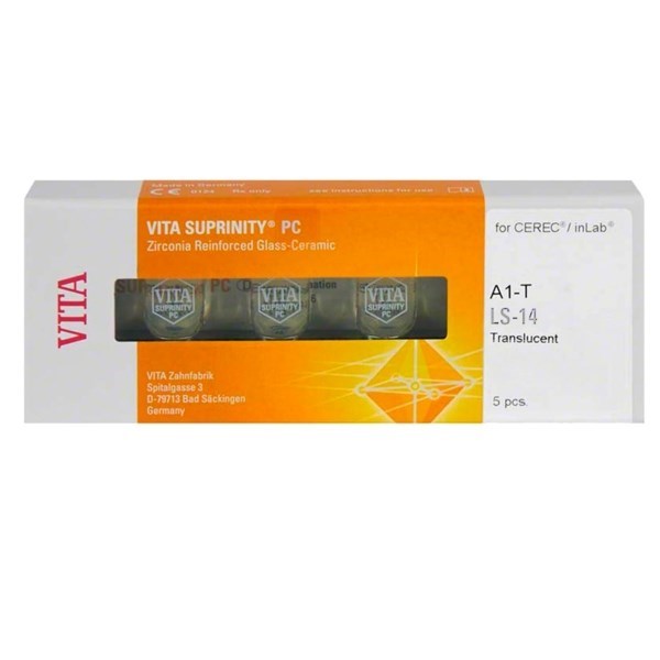 Высокопрочное поколение стеклокерамики усиленное диоксидом циркония VITA SUPRINITY PC для CEREC/inLab выдает максимально точные результаты. Стабильность и надежность керамических блоков показывают хороший результат в области краев зубов. VITA SUPRINITY PC для CEREC/inLab выпускаются в двух степенях транслюцентности (T, HT).