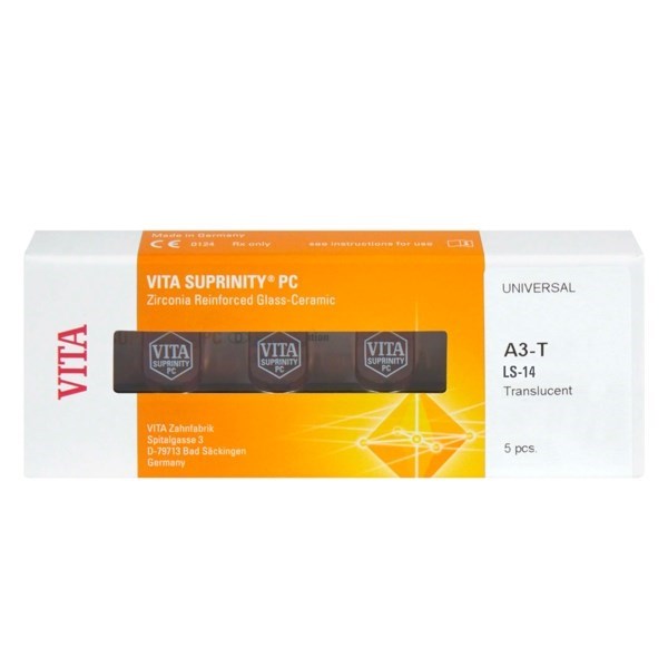VITA SUPRINITY - стеклокерамические блоки, прозрачные, цвет A3, размер LS-14, 5 шт