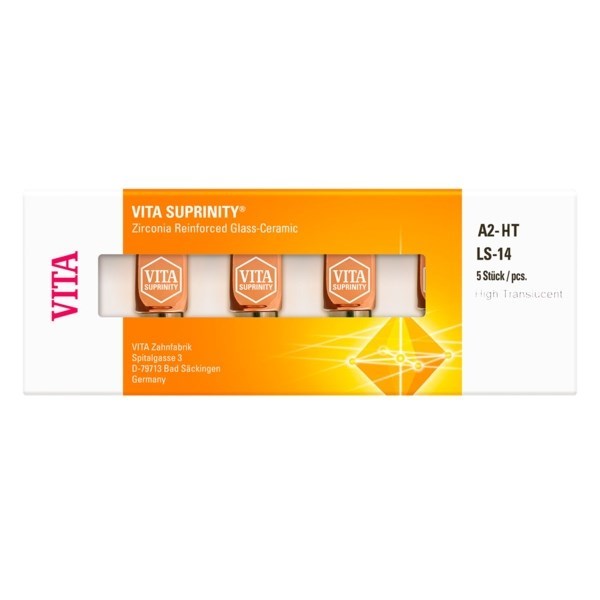 VITA SUPRINITY - стеклокерамические блоки, высокая прозрачность, цвет A2, размер LS-14, 5 шт