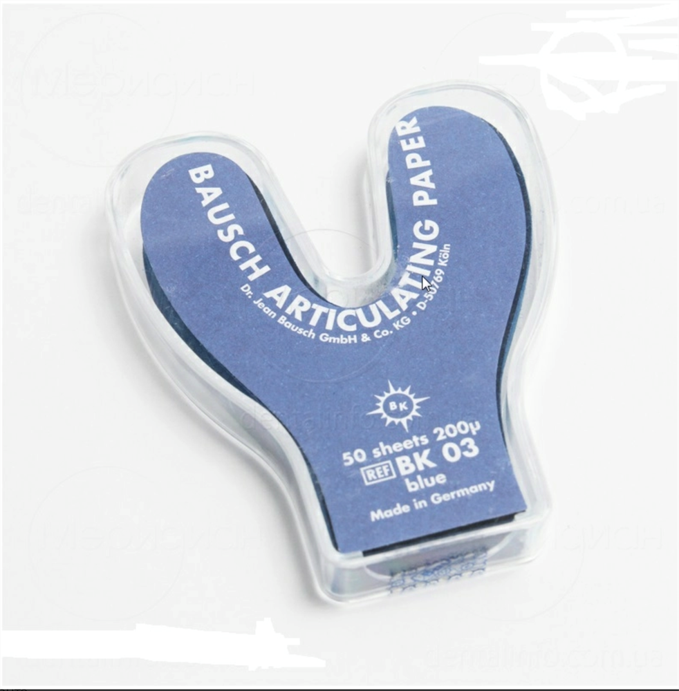 В считанные секунды получает стоматолог точный профиль распределения жевательного давления. Преждевременные контакты становятся моментально чётко видимыми и могут быть целенаправленно сошлифованы. Только артикуляционная бумага Бауша толщиной 200 мкм с нарастающей интенсивностью цвета способна так надёжно регистрировать имеющиеся завышения на контактных пунктах. После первичной обработки завышенных контактов следует в дальнейшем использовать более тонкие проверочные средства, которые также имеются в нашем ассортименте.