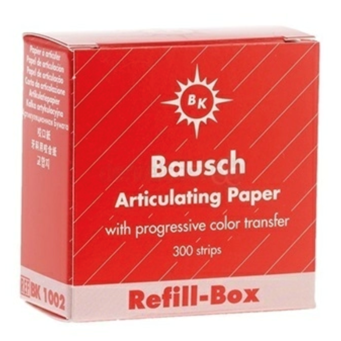 Артикуляционная бумага Бауша толщиной 200 мкм с нарастающей интенсивностью цвета является единственным видом бумаги, позволяющим представить жевательную силу различной интенсивности в виде цветных отображений с оттенками, зависящими от величины нагрузки: МАЛОЕ ДАВЛЕНИЕ ПРИ НАКУСЫВАНИИ ОТОБРАЖАЕТСЯ БОЛЕЕ СВЕТЛЫМ, А БОЛЬШОЕ ДАВЛЕНИЕ – БОЛЕЕ ТЁМНЫМ ОТПЕЧАТКОМ.