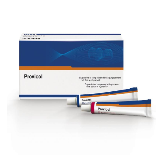 Provicol – безэвгенольный цемент с гидроокисью кальция на основе композита, легкий в обработке, не влияющий на отверждение пломбировочных и фиксирующих материалов.