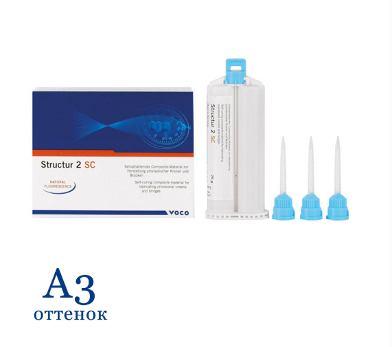 Structur 2 в оттенке А3 (картридж 75 г.) – флюоресцирующая самоотверждаемая система «паста-паста» для изготовления временных коронок, мостовидных протезов, вкладок и накладок.