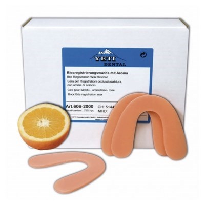 Очень твердый воск для регистрации прикуса. Очень стабильный даже при высоких температурах. Апельсиновый ароматизатор добавлен для того, чтобы пациент чувствовал себя более комфортно во время проведения процедуры регистрации прикуса.