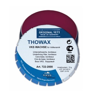 Воск для вкладок THOWAX, бордовый, 70 г. Отлично подходит в качестве первого слоя при моделировании вкладок, коронок, вторичных деталей и для моделирования в пределах цервикальной области. - высокая плотность позволяет вырезать края коронок - особенно стабильный - непрозрачный для лучшего контраста со штампиком.