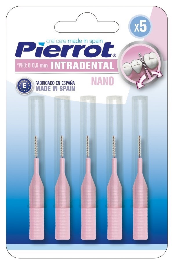 Межзубные ёршики Nano Interdental - многоразовые ёршики для удаление зубного налета и остатков пищи из межзубных промежутков, которые не могут быть доступны для зубных щеток и межзубных нитей. Ёршики Pierrot Interdental изготовлены из высококачественной нержавеющей стали (стержень) и покрыты пластмассовым покрытием для защиты зубной эмали и дёсен. Благодаря гибкой головке и антискользящему покрытию ёршики удобны в использовании. Удобная пластмассовая ручка и необходимый колпачок для защиты. В упаковке пять штук.