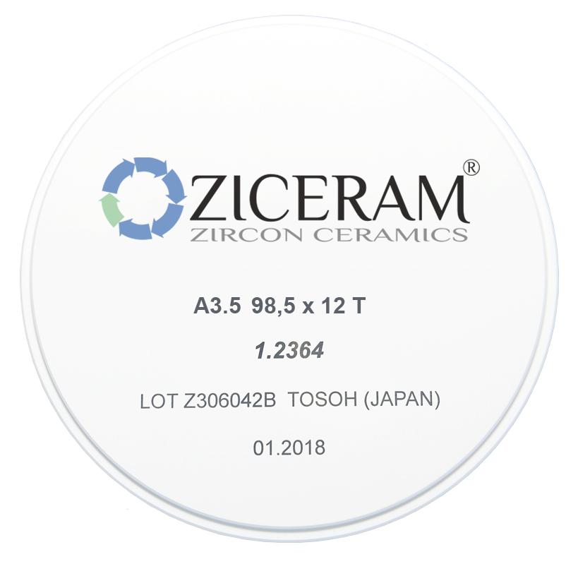 Транслюцентные диски диоксида циркония ZICERAM© с оттенком А3.5 по шкале Вита.