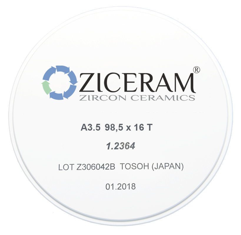 Транслюцентные диски диоксида циркония ZICERAM© с оттенком А3.5 по шкале Вита.