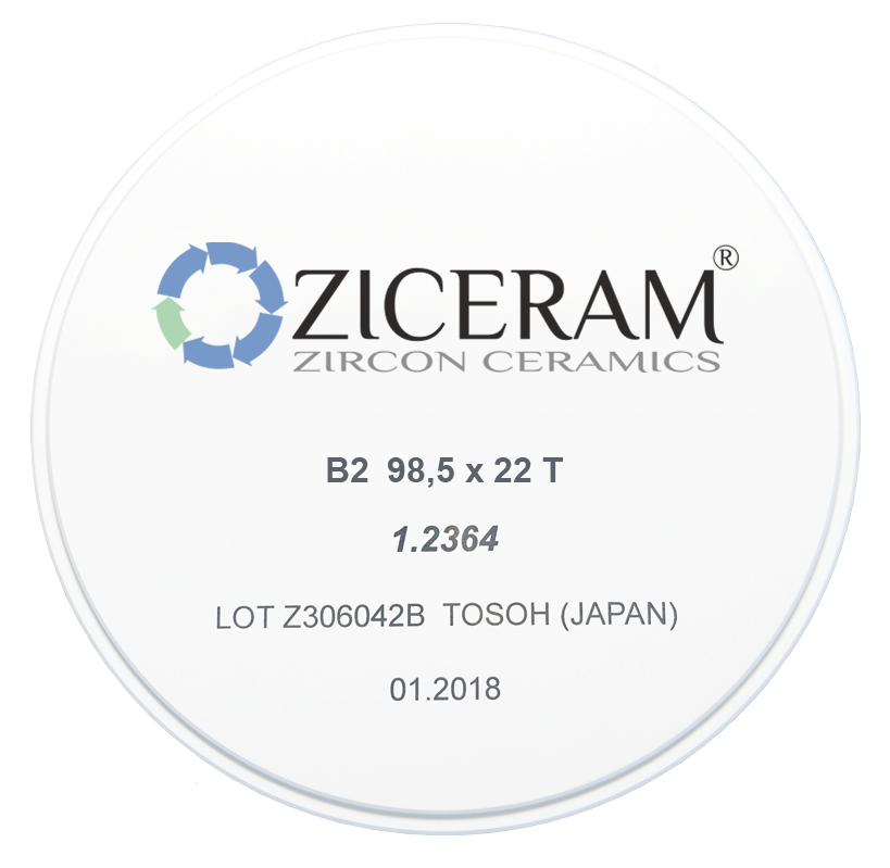 Заготовки диоксида циркония ZICERAM с оттенком В2 98,5 x22T, транслюцентные