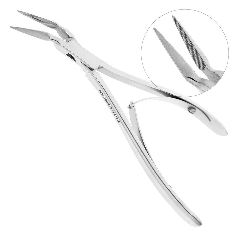 Для удаления костных фрагментов и мелкого инструмента в ротовой полости применяется зажим Stieglitz производства немецкой компании HLW Dental Instruments.