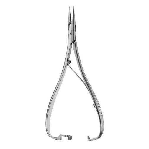 Зажим лигатурный, тонкий, длина 140 мм DP387R, B.Braun (Aesculap, Германия) применяется для захвата и пережатия сосудов, тканей, основания органов. Он представляет собой две закругленные во внутрь ветви, разделённые замком на рабочие конусовидные губки. На рукоятке имеются поперечные насечки и кремальера со многоступенчатой конструкцией для более крепкого хвата. На браншах нанесены насечки для надежной фиксации с исключением возможности соскальзывания с уже пережатого сосуда.