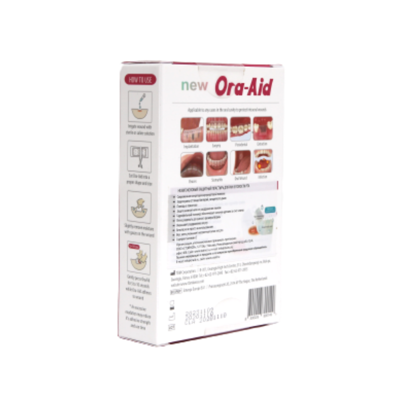Пластырь Ora-Aid представляет собой неэвгеноловый материал, предназначенный для защиты внутриротовых ран