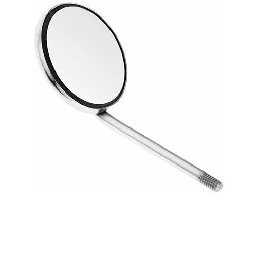 Рабочая часть зеркала расположена по отношению к держателю под тупым углом, что способствует осмотру труднодоступных мест в ротовой полости. Также стоматологический инструмент служит для отведения и удержания мягких тканей.