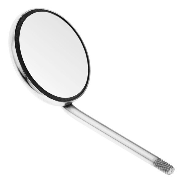 Рабочая часть зеркала расположена по отношению к держателю под тупым углом, что способствует осмотру труднодоступных мест в ротовой полости. Также стоматологический инструмент служит для отведения и удержания мягких тканей.