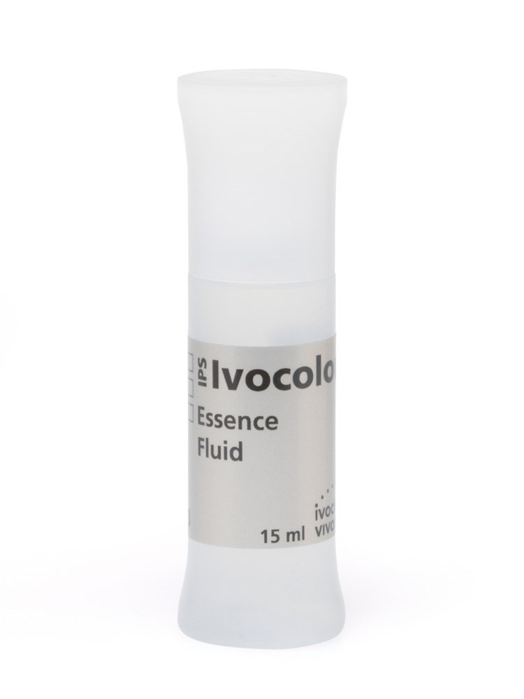 С флюидом IPS Ivocolor Essence Fluid порошки IPS Ivocolor Essence могут быть замешаны до пастообразной консистенции и получают аналогичные глазурующие свойства. Жидкость IPS Ivocolor Essence Fluid подходит только для однократного замешивания красителя IPS Ivocolor Essence.
