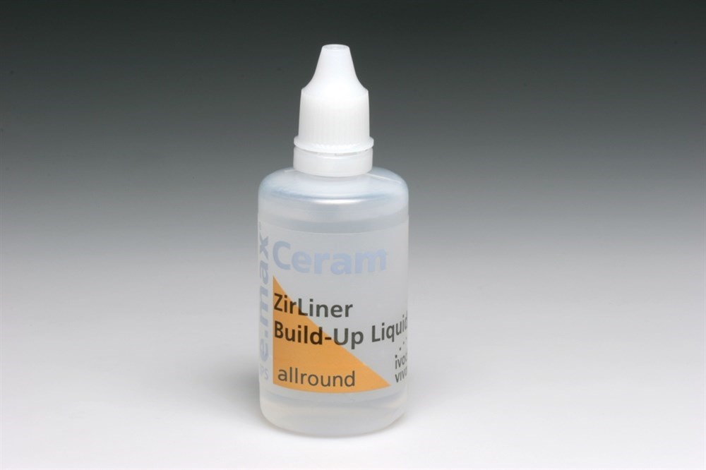 IPS e.max Ceram ZirLiner Build-Up Liquid allround жидкость служит исключительно для замешивания порошка циркониевого подслоя IPS e.max Ceram ZirLiner. Жидкость придает подслою ZirLiner кремообразную и пластичную консистенцию и позволяет легко и эффективно наносить подслой. Если необходима другая консистенция, жидкость можно смешивать в произвольном соотношении с другими жидкостями IPS e.max Ceram.
