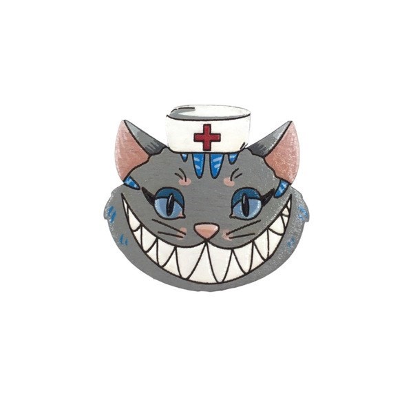 Значок “Чеширский кот” из дерева дополнит образ специалиста. Аксессуар расписан акриловыми красками, покрыт защитным лаком, чтобы краска держалась дольше. Крепится на булавку сзади.