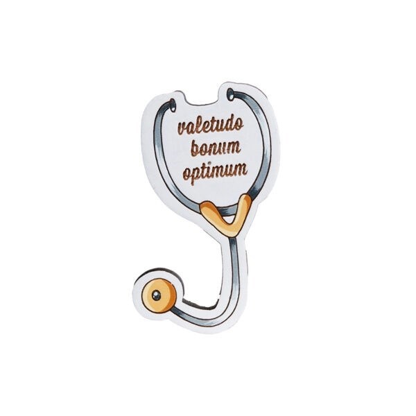 Деревянный значок ручной работы «Фонендоскоп» для врачей терапевтов. Раскрашен вручную акриловыми красками. Сзади надежное крепление — металлическая булавка.