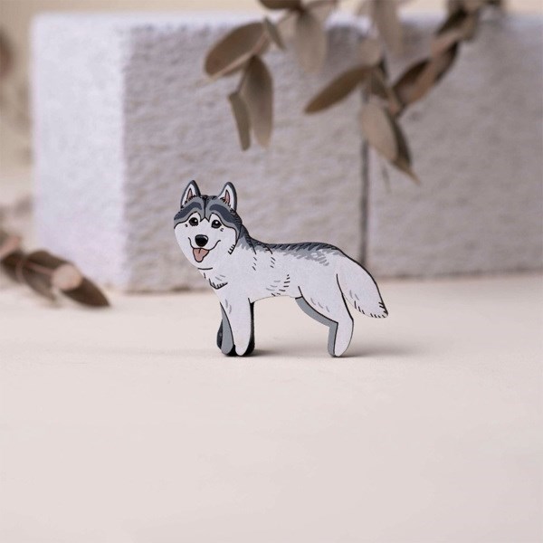 Трудно найти людей, которые остаются равнодушными при виде собак Хаски. Раскрашен вручную, покрыт защитным слоем лака. Крепление сзади — булавка.