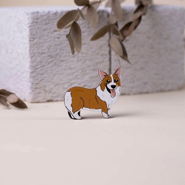 Деревянный значок с милым пушистым корги добавит настроения вашему халату или повседневной одежде. Дружелюбный пес нарисован акриловыми красками, покрыт защитным лаком, чтобы дольше сохранить яркость значка. А крепится аксессуар на булавкую