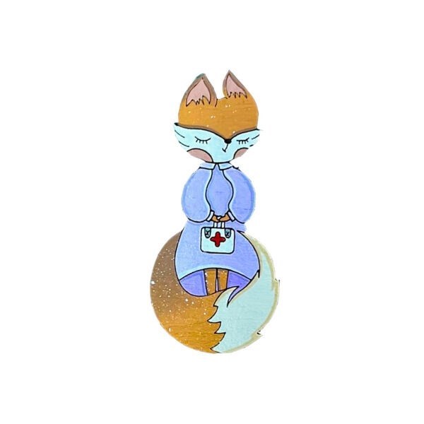 Деревянный значок с лисичкой-врачом украсит халат врача и добавит настроения пациенту. Значок покрашен вручную акриловыми красками, покрыт защитным слоем лака.