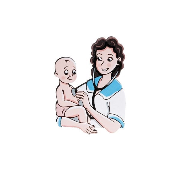 Значок "Педиатр с малышом", кучерявая брюнетка